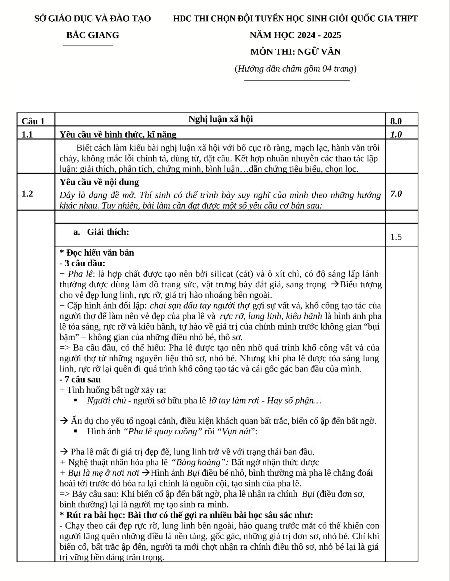 Đề thi môn Ngữ văn chọn Đội tuyển học sinh giỏi quốc gia THPT năm học 2024 - 2025 - Sở GDĐT Bắc Giang